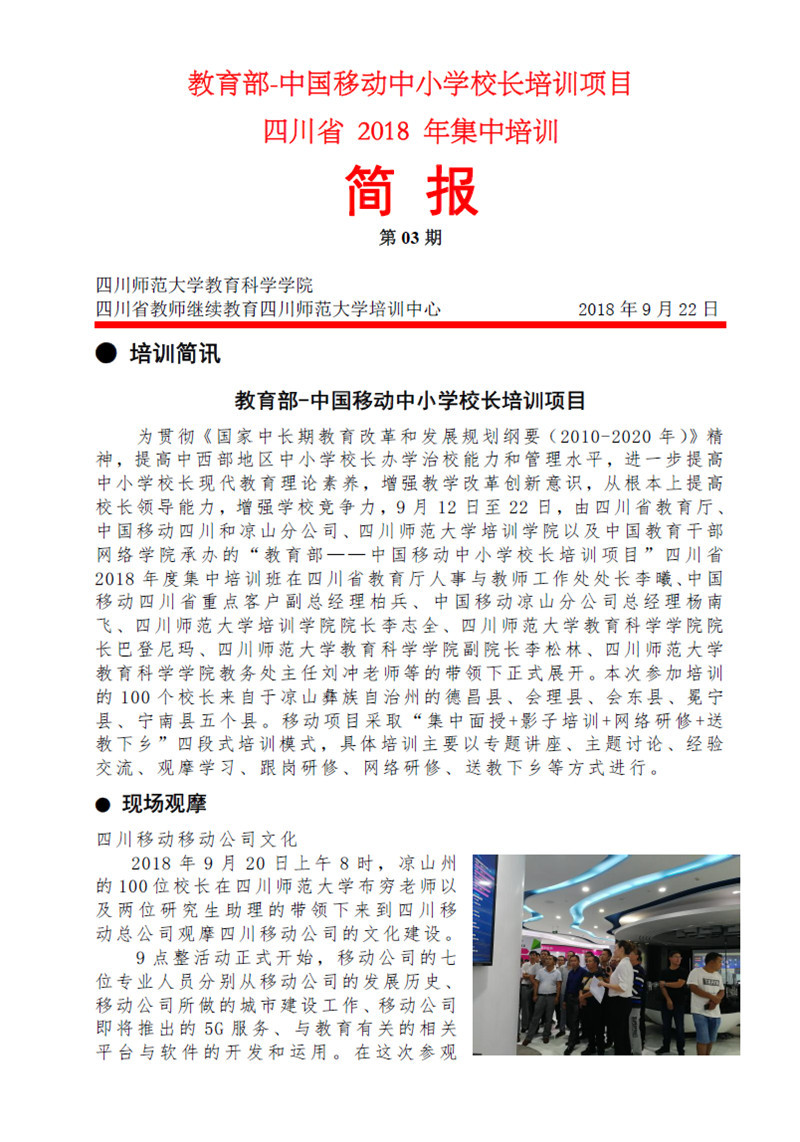 【四川】教育部——中國移動中小學校長培訓項目簡報(第三期)