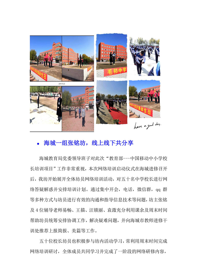 【遼寧】教育部——中國移動中小學校長培訓項目-海城市第一工作坊張銘坊二期簡報