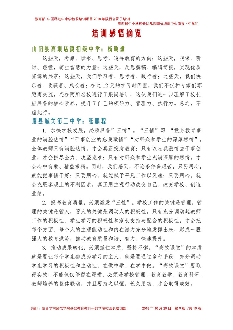 【陝西】教育部——中國移動中小學校長培訓項目-陝西省影子培訓(中學組)簡報