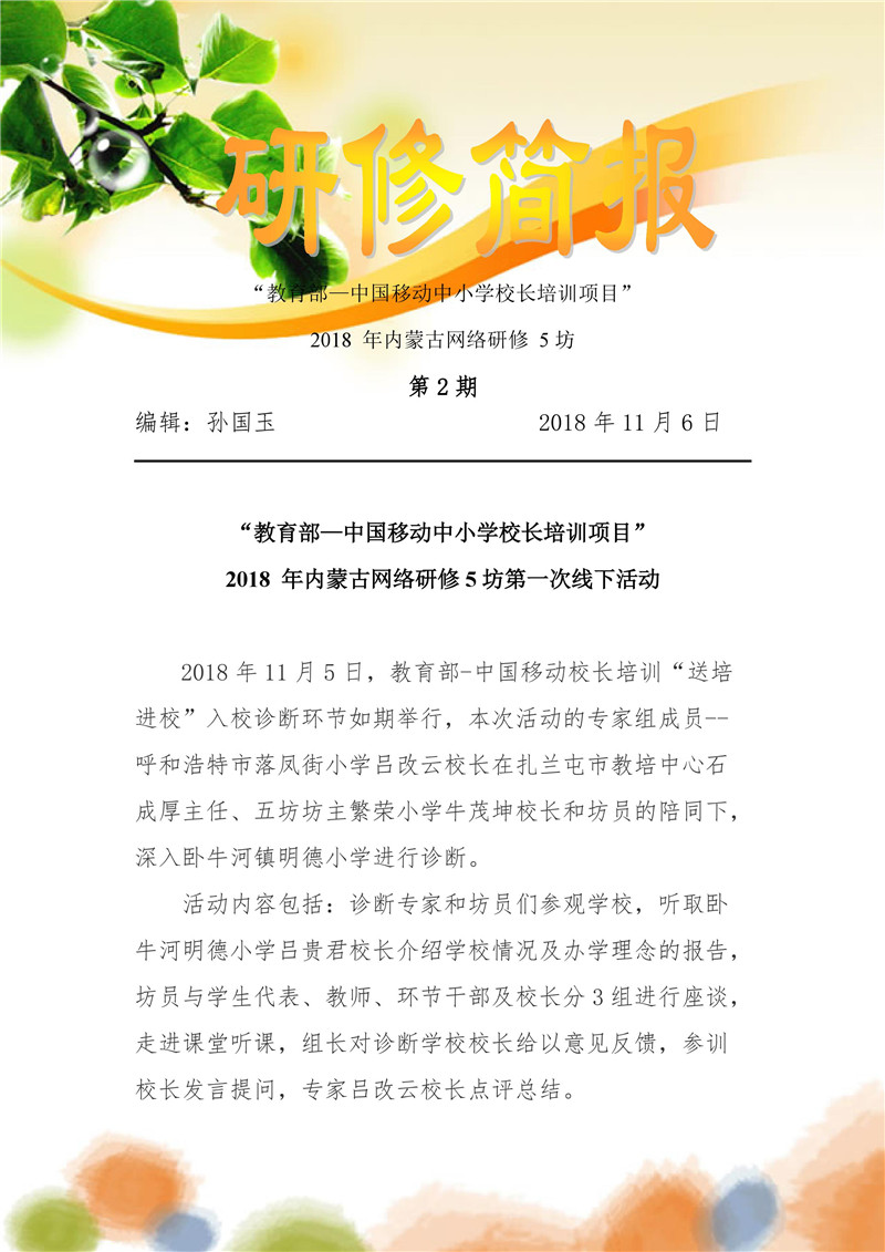【內蒙古】教育部——中國移動中小學校長培訓項目-內蒙古網絡研修第五坊簡訊第2期