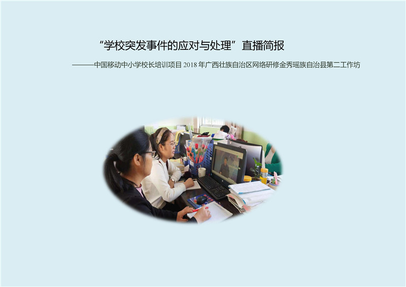 【廣西直播活動簡報】教育部——中國移動中小學校長培訓項目-廣西金秀縣第二工作坊學習“學校突發事件的應對與處理”直播簡報