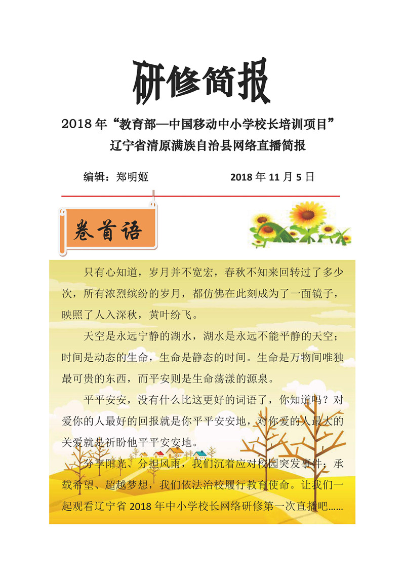 【遼寧第一期直播活動簡報】教育部——中國移動中小學校長培訓項目-清原滿族自治縣觀看研修直播1簡報