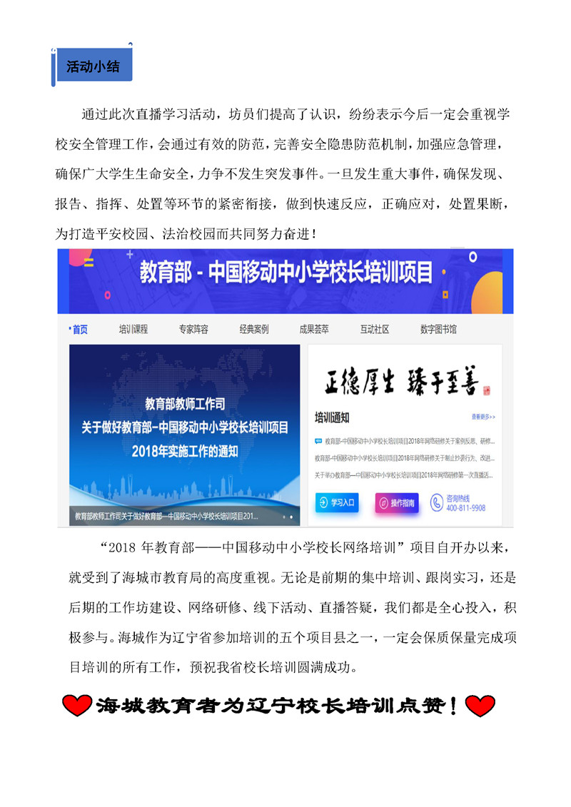 【遼寧第一期直播活動簡報】教育部——中國移動中小學校長培訓項目-海城第三期研修簡報
