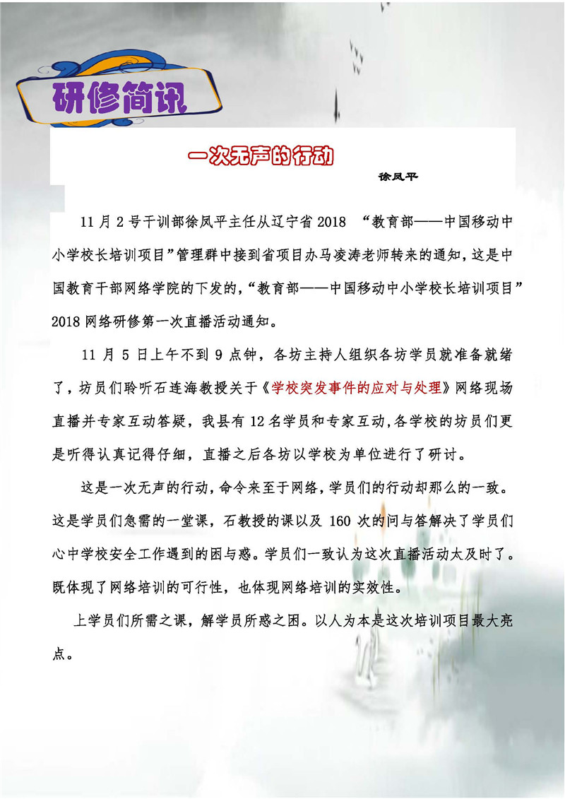 【遼寧第二期直播活動簡報】教育部——中國移動中小學校長培訓項目-盤山縣網絡直播專刊簡報