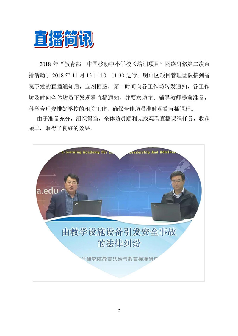 【遼寧第二期直播活動簡報】教育部——中國移動中小學校長培訓項目-(第6期)明山區“中國移動-中小學校長培訓”—第2次直播簡報