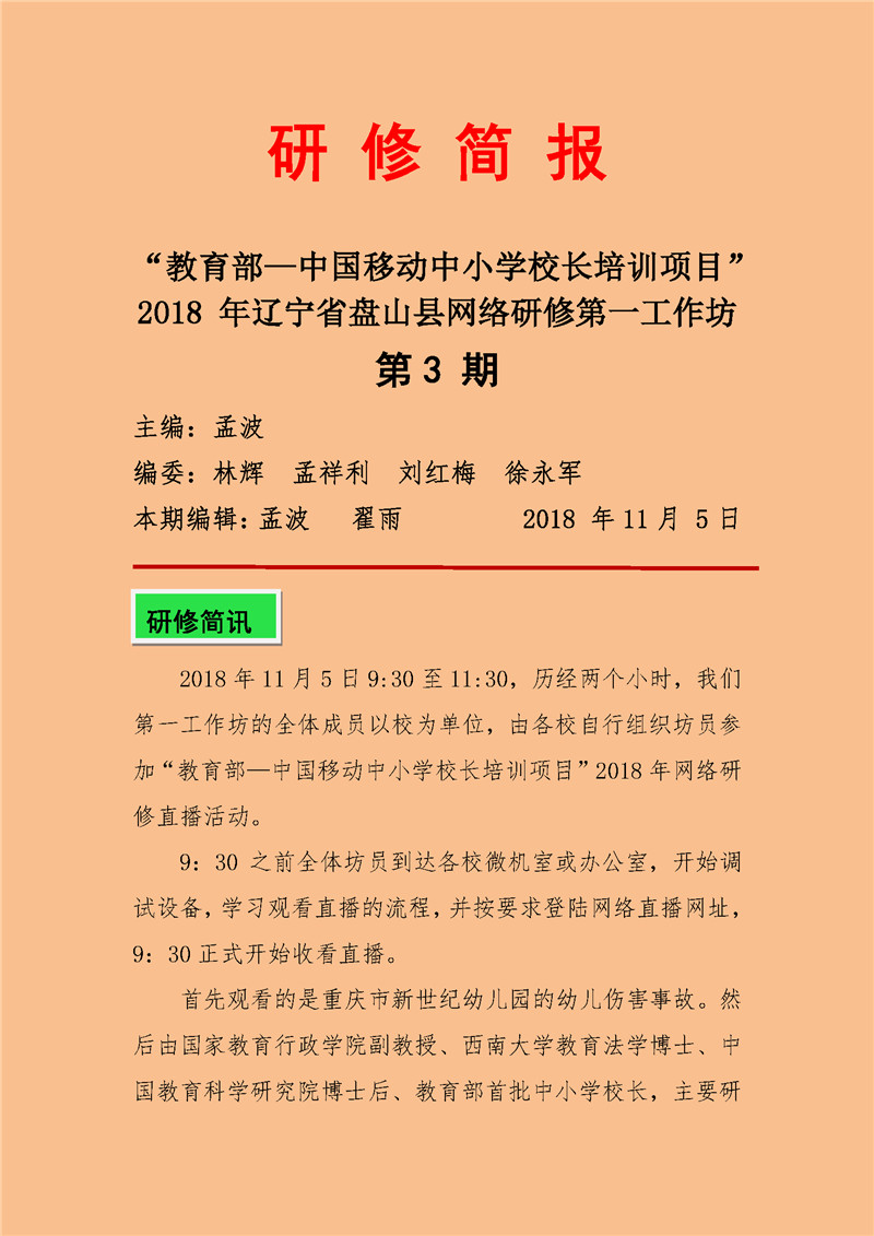【遼寧第一期直播活動簡報】教育部——中國移動中小學校長培訓項目-盤山縣第一工作坊第三期簡報(1)