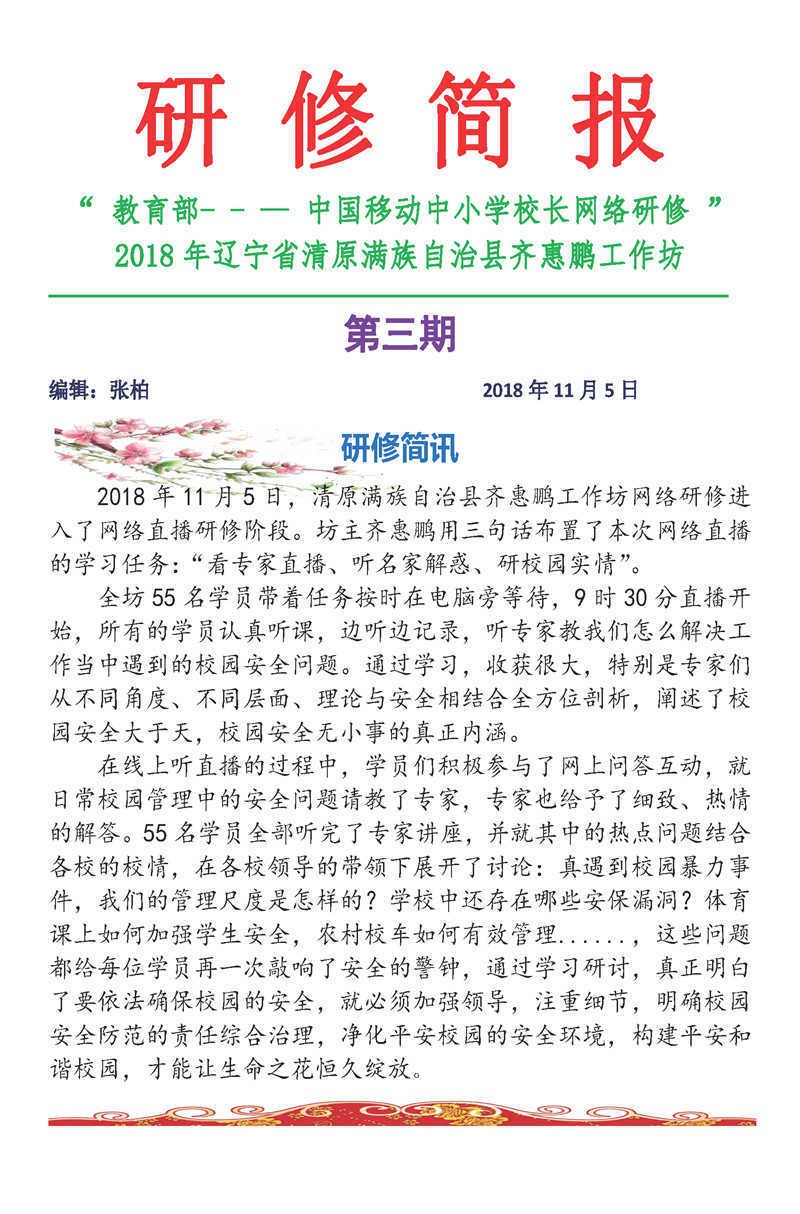 【遼寧第一期直播活動簡報】教育部——中國移動中小學校長培訓項目-清原齊惠鵬直播研修簡報2007
