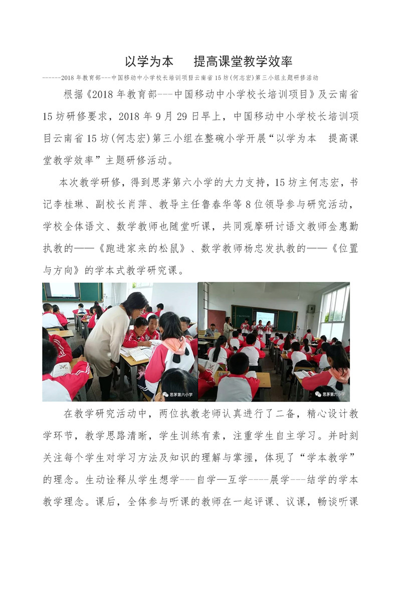 【雲南第二期直播活動簡報】教育部——中國移動中小學校長培訓項目-15坊第三小組主題研修活動