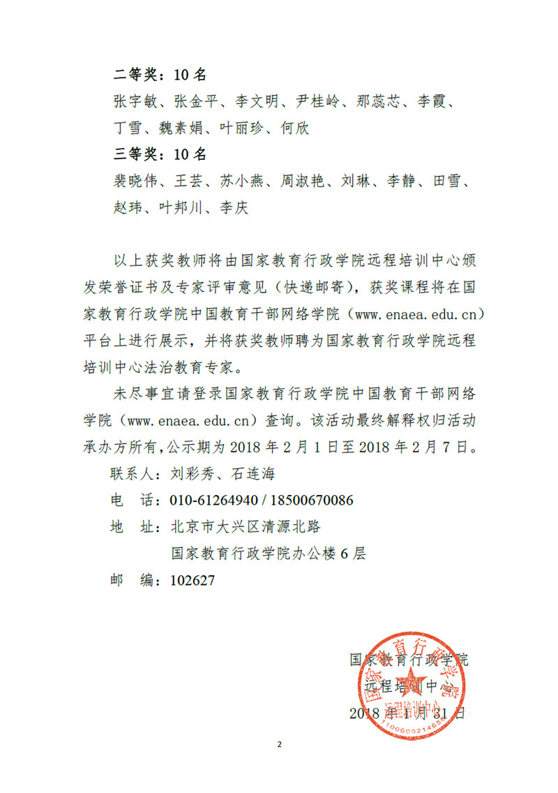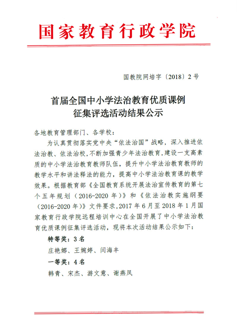 首屆全國中小學法治教育優質課例征集評選活動結果公示