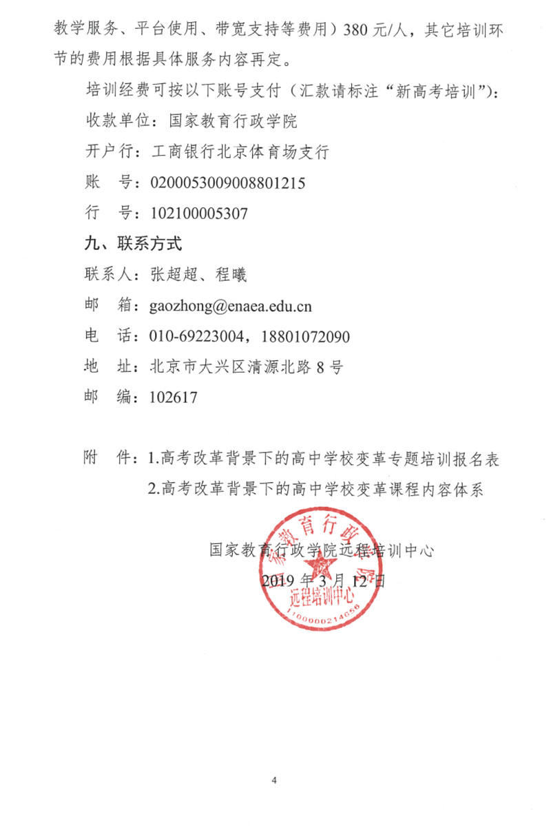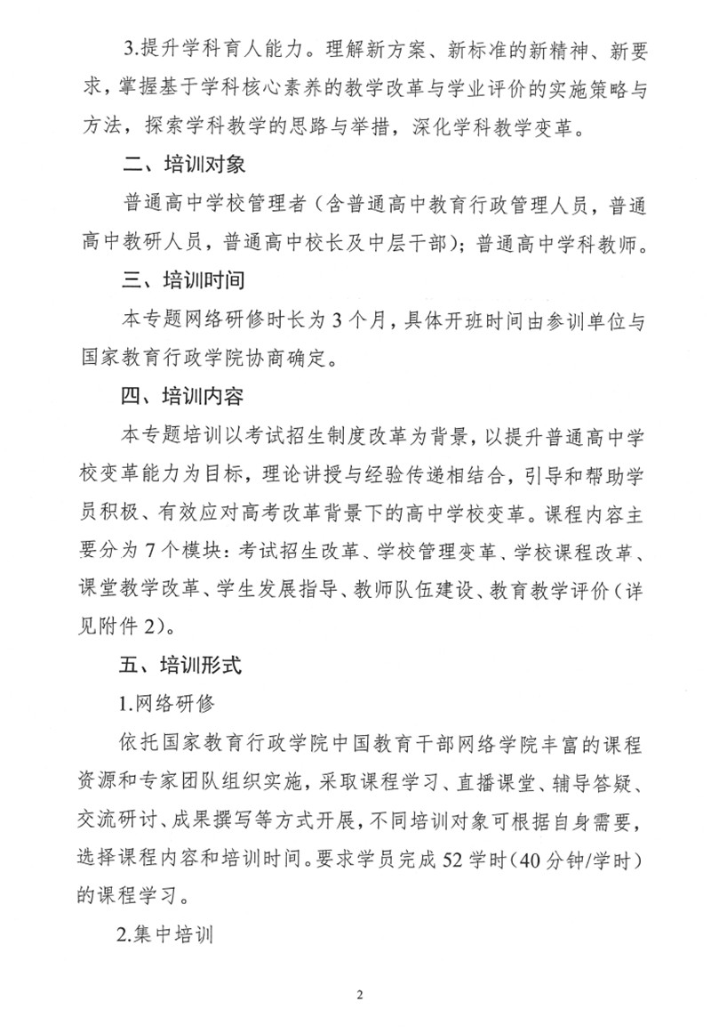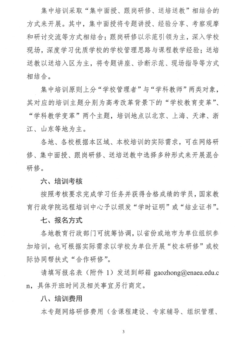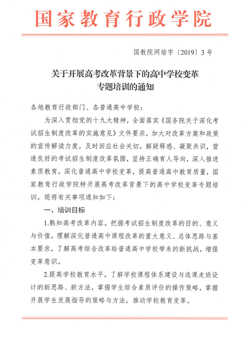 關於開展高考改革背景下的高中學校變革的培訓通知