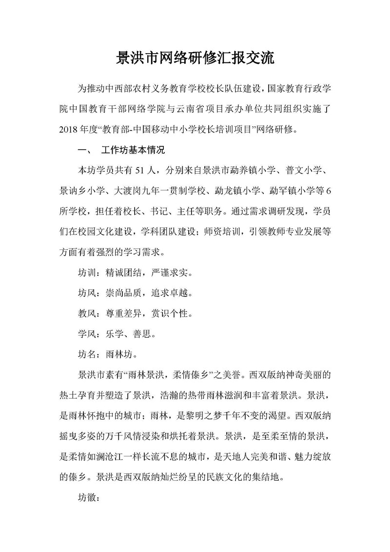 【雲南】教育部——中國移動中小學校長培訓項目-景洪7坊彙報材料