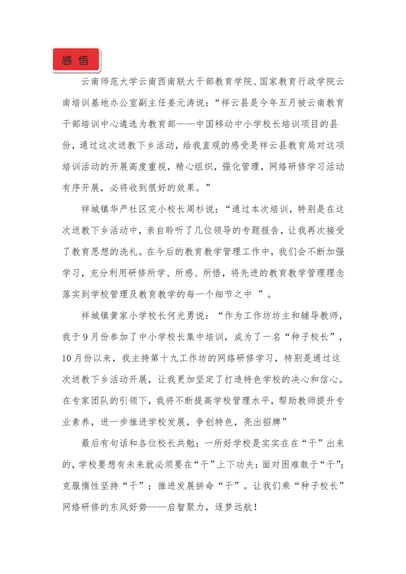 【雲南】教育部——中國移動中小學校長培訓項目-祥雲縣送教下鄉幹教院簡報