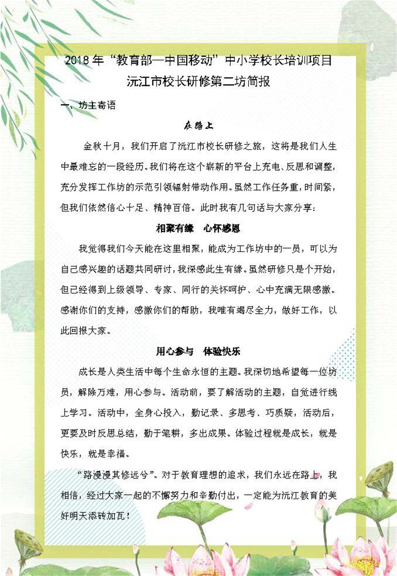 【湖南】教育部——中國移動中小學校長培訓項目-(網絡研修簡報-湖南)沅江市校長研修第二坊簡報