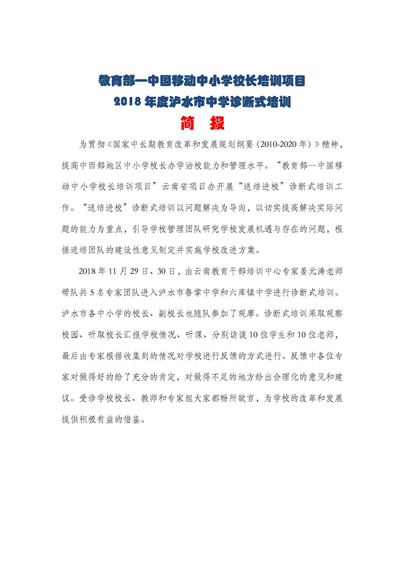 【雲南】教育部——中國移動中小學校長培訓項目-2018年度瀘水市中學診斷培訓簡報