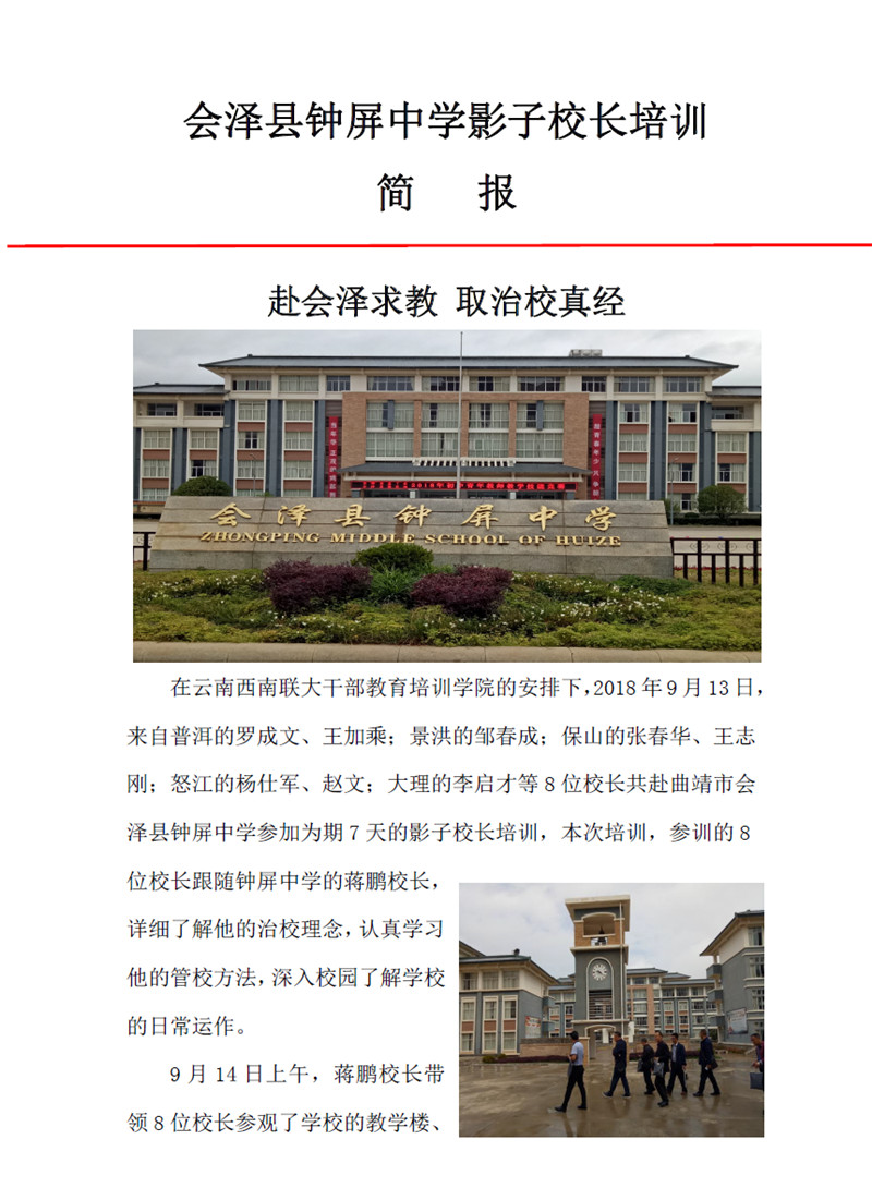 【雲南】會澤縣鍾屏中學組影子校長培訓