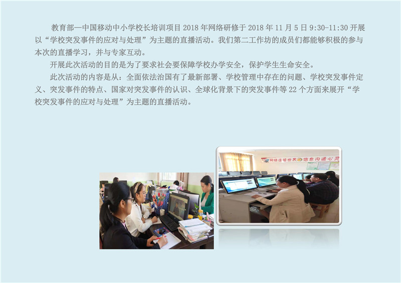 【廣西直播活動簡報】教育部——中國移動中小學校長培訓項目-廣西金秀縣第二工作坊學習“學校突發事件的應對與處理”直播簡報