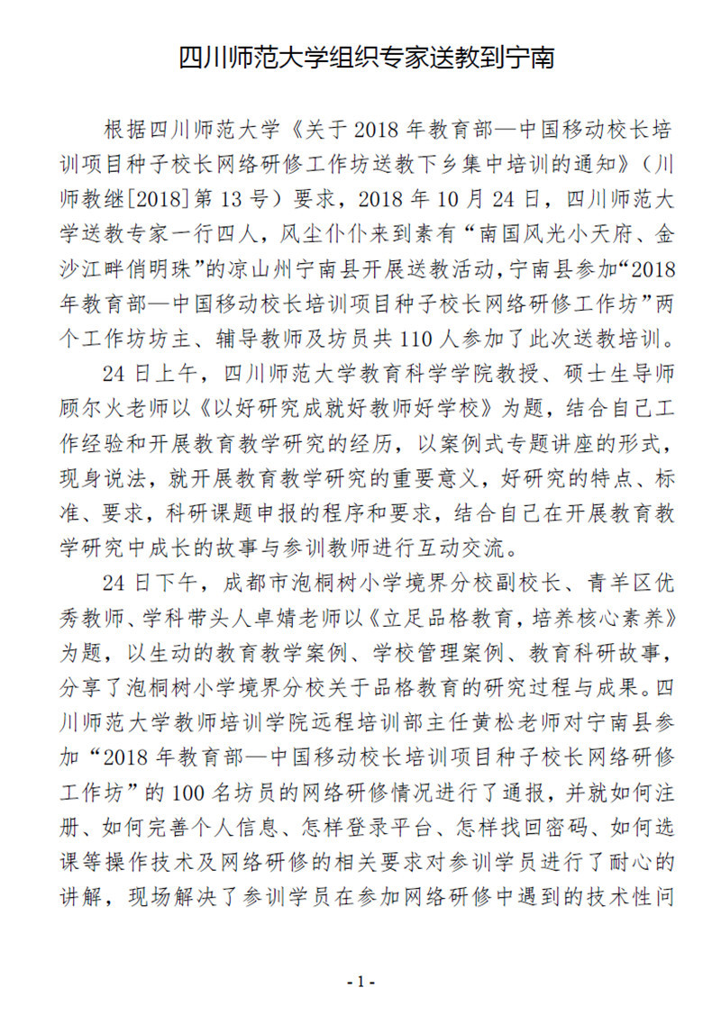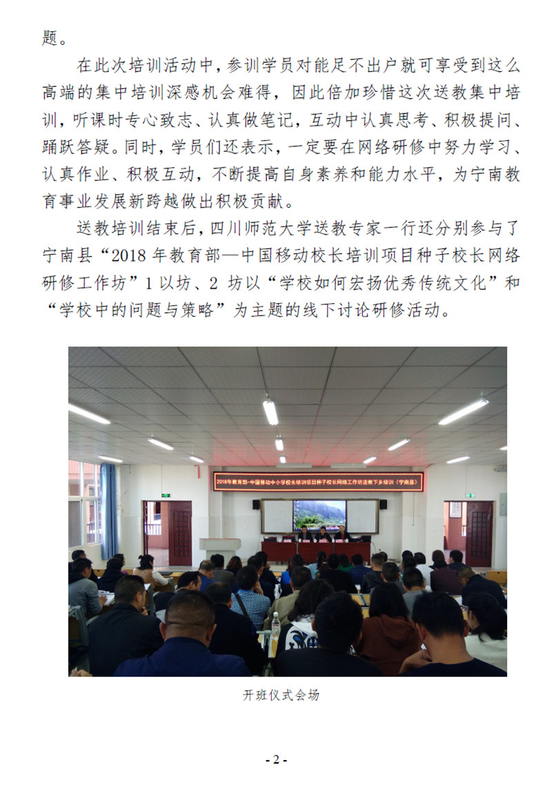 【四川】教育部——中國移動中小學校長培訓項目-四川師範大學組織專家送教到寧南