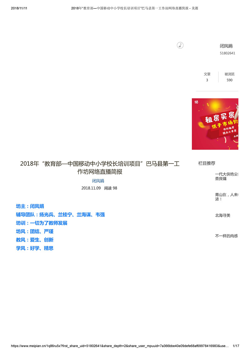【廣西直播活動簡報】教育部——中國移動中小學校長培訓項目-廣西壯族自治區第1坊第一期簡報(閉鳳娟)
