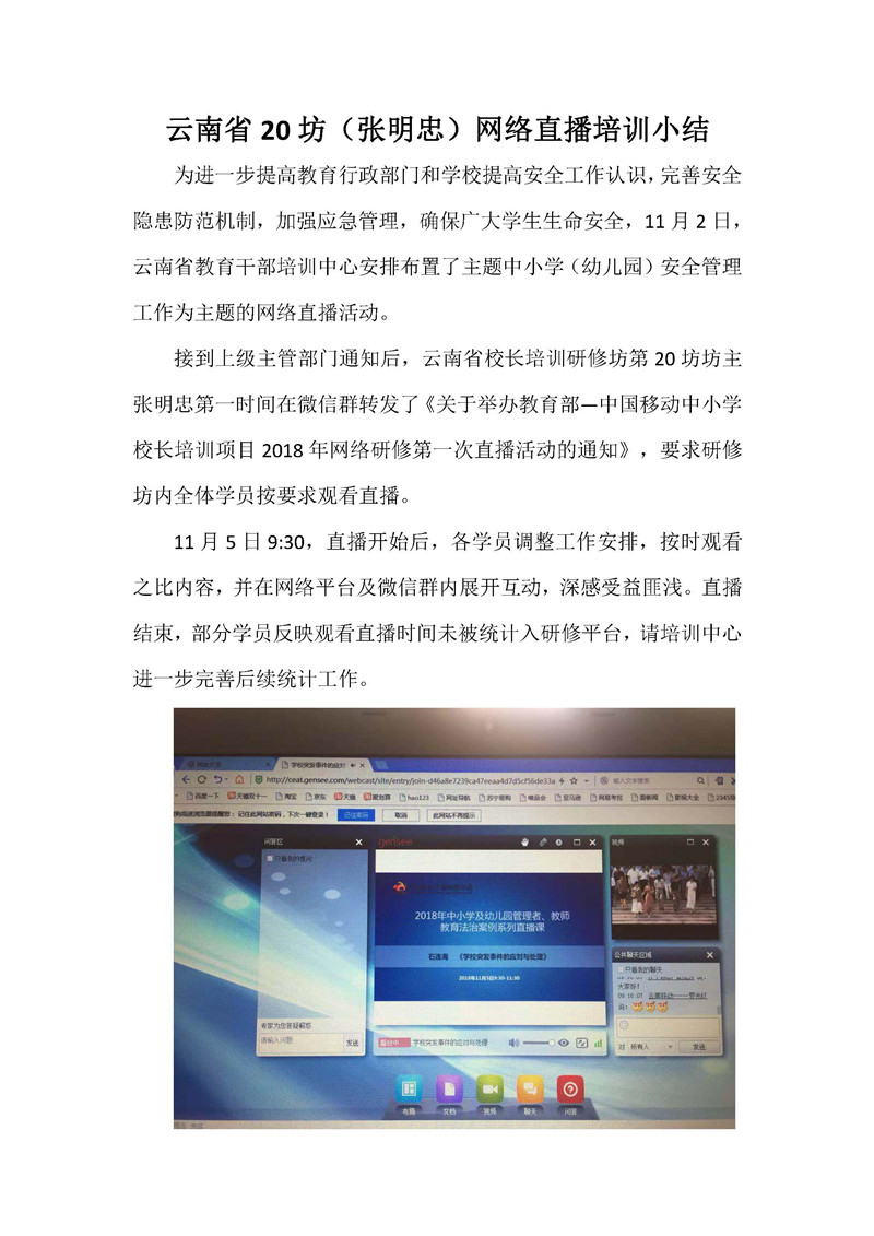 【雲南直播活動簡報】教育部——中國移動中小學校長培訓項目-雲南省20坊直播活動小結