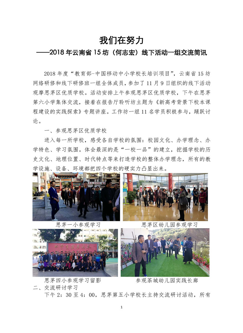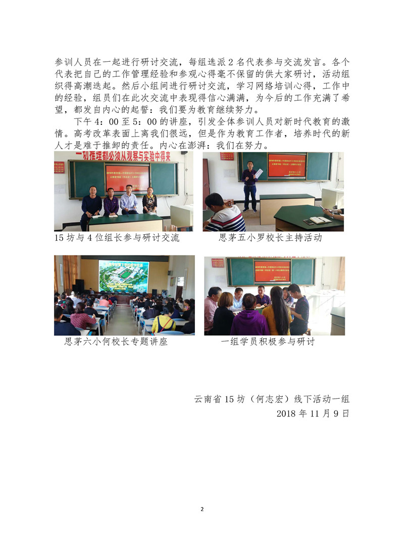 【雲南第二期直播活動簡報】教育部——中國移動中小學校長培訓項目-2018年雲南省15坊(何誌宏)開展線下活動一組簡訊