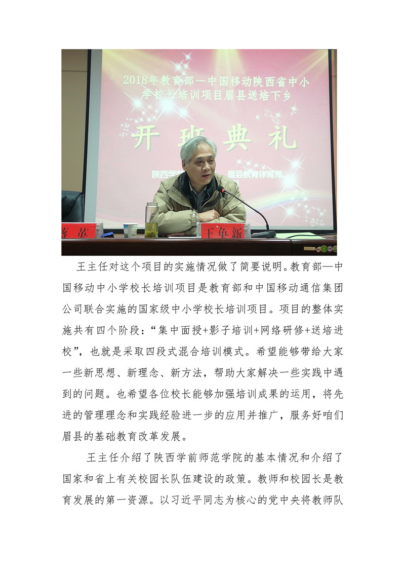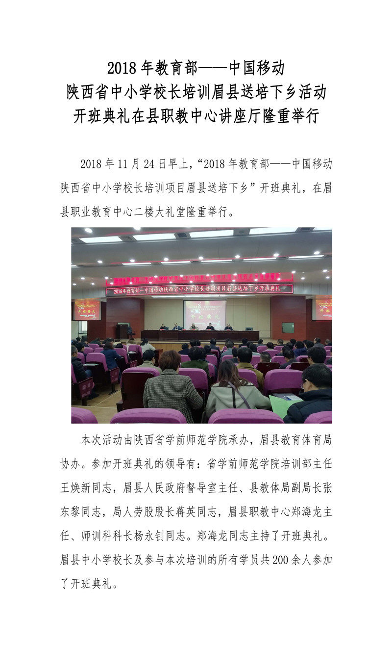 【陝西】教育部——中國移動中小學校長培訓項目-眉縣“送培下鄉”活動 開班典禮在縣職教中心講座廳隆重舉行