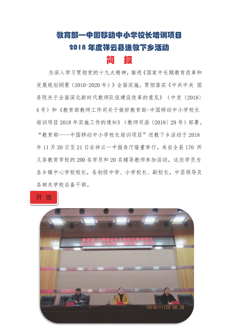 【雲南】教育部——中國移動中小學校長培訓項目-祥雲縣送教下鄉幹教院簡報