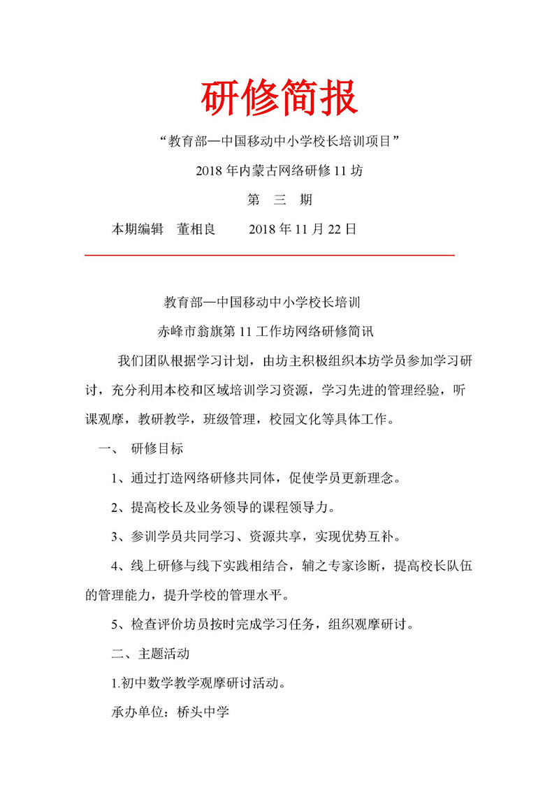 【內蒙古】教育部——中國移動中小學校長培訓項目-翁旗11坊研修簡報3